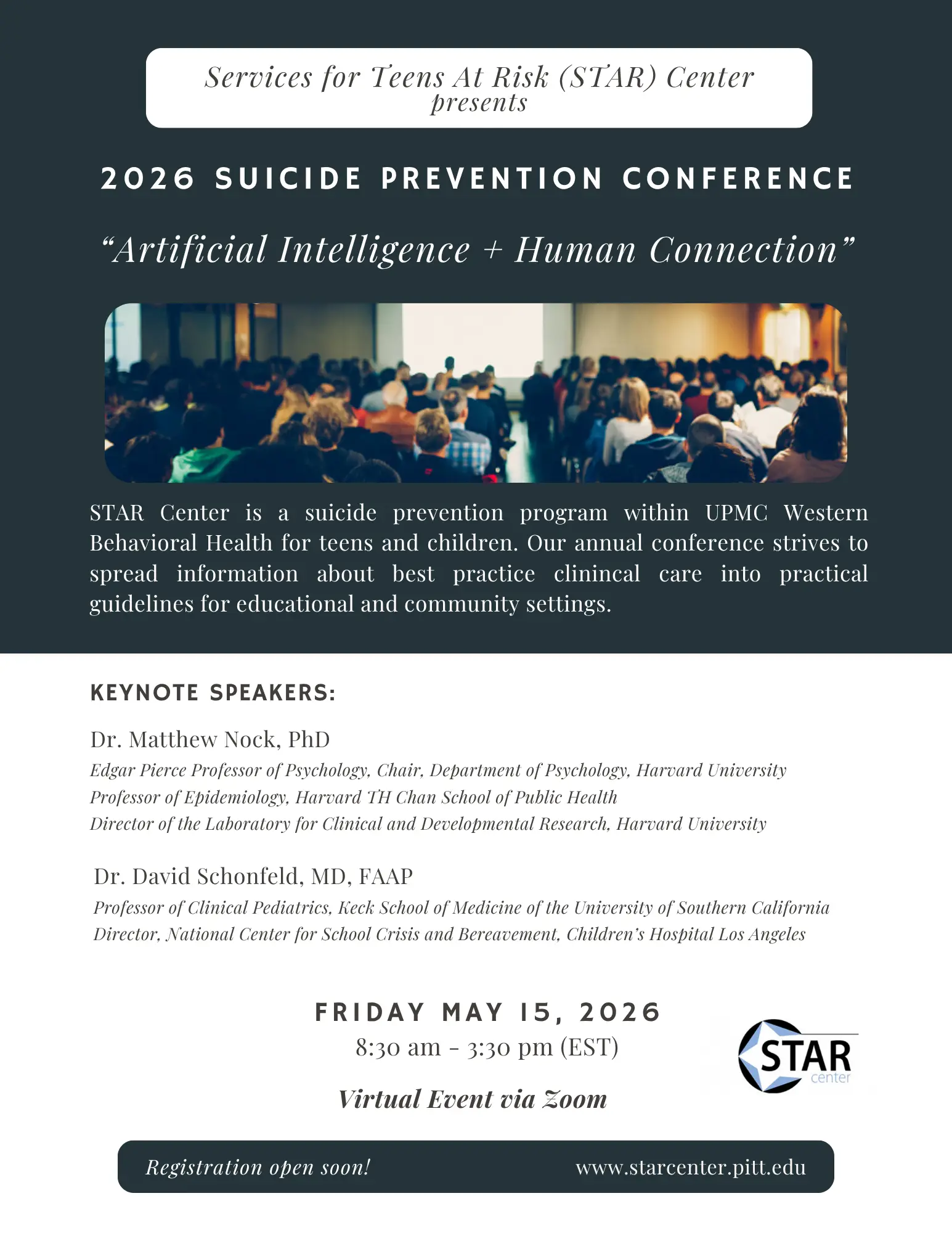 The annual Services for Teens At Risk (STAR) Center will be held on Friday, May 15, 2026.